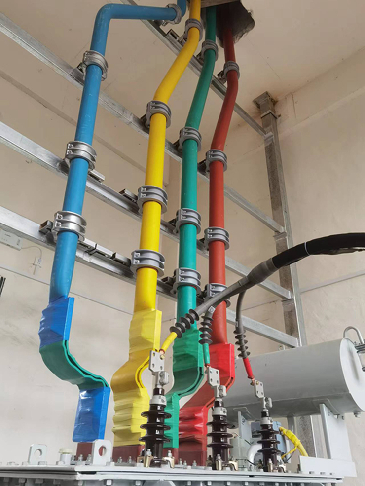 上图看到管型母线槽作为变压器变压后输入到户的主线而使用。与密集型母线槽比承载电流更大。可按需设计安装合适类型母线槽。